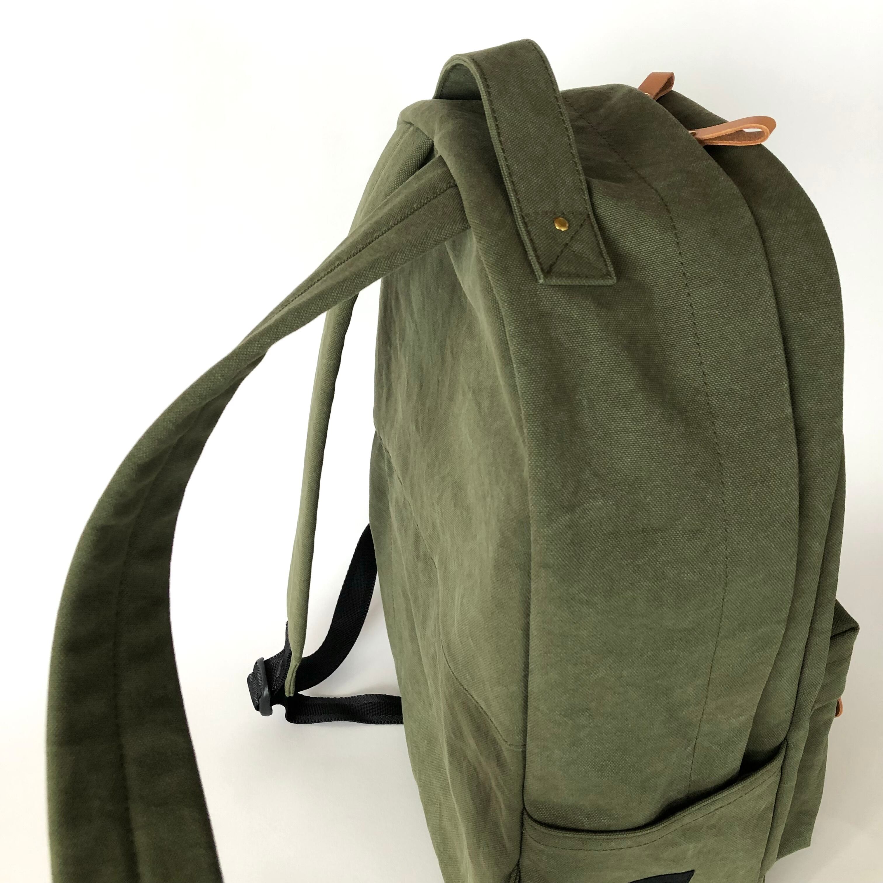 高密度で丁寧に織られた国産の帆布に、ビンテージ加工を施した雰囲気のあるリュックです。