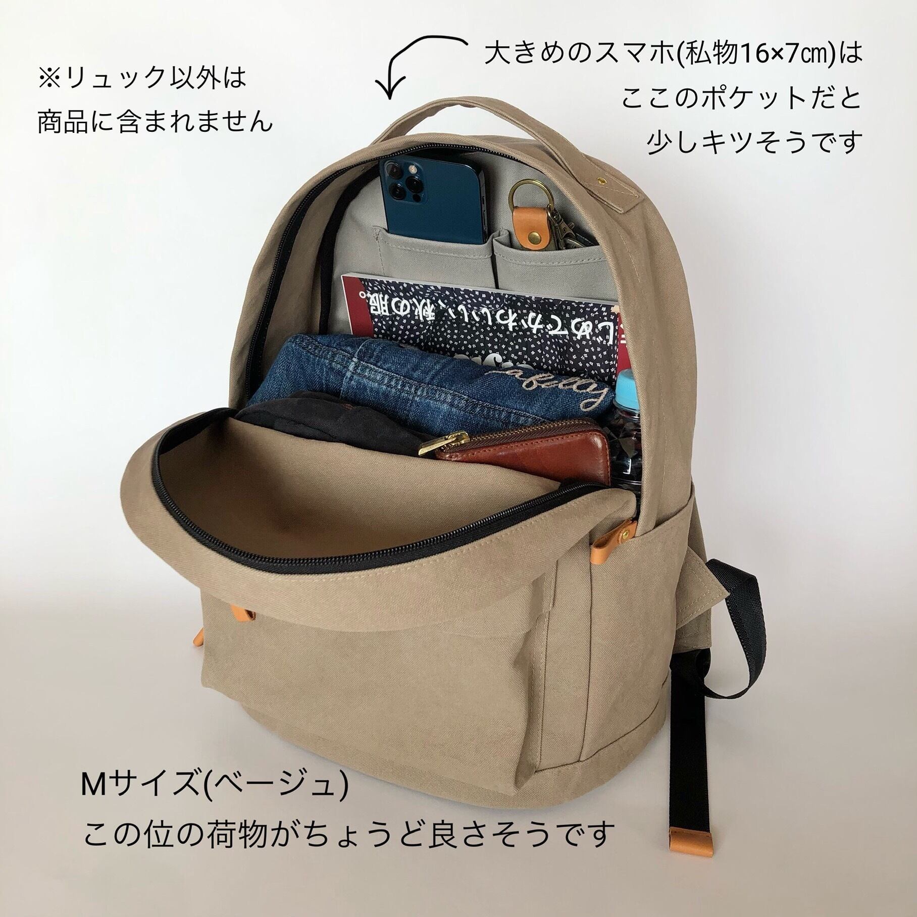 A4サイズ対応の帆布リュックです。
